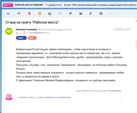 • В печатном издании – газете «Рабочие места»;