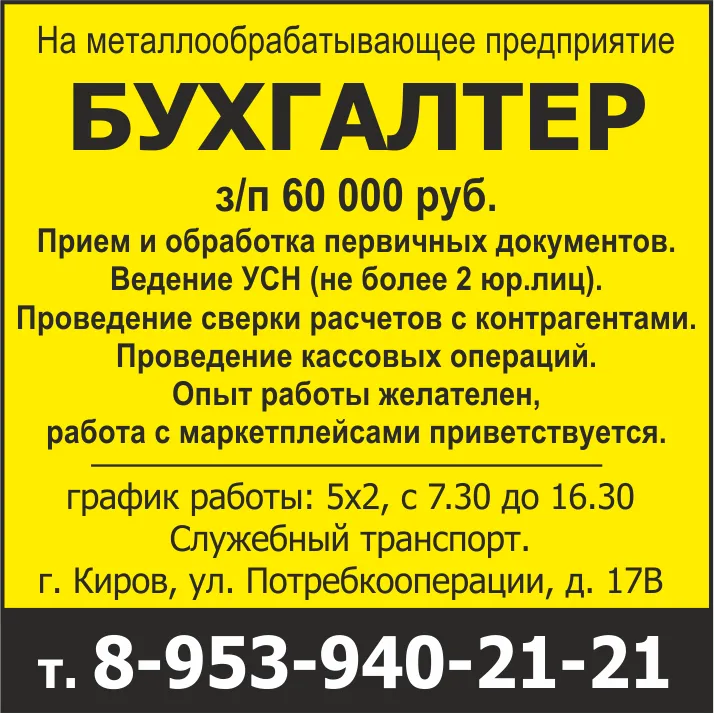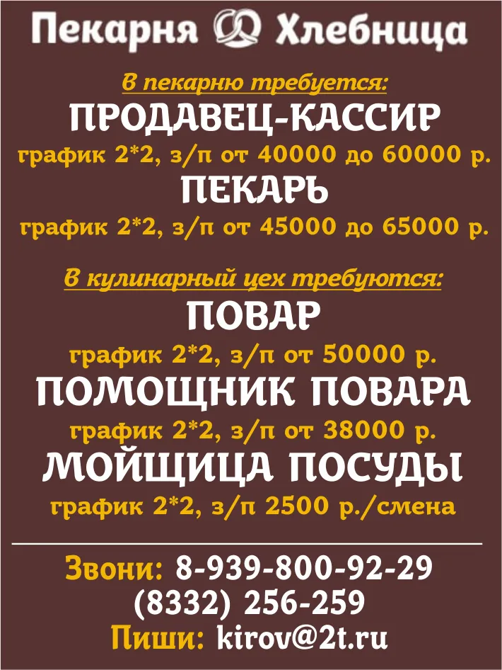 К сожалению (или к счастью) в данный момент мы ищем персонал только в районах Кировской области, однако при поиске в Кирове мы обязательно воспользуемся ресурсами Вашей газеты.
